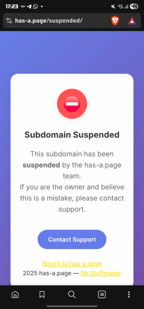 On this new page you can find a way to contact the support to find out more about your suspension and how to get it unsuspended